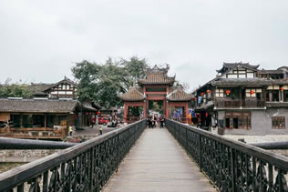 元通古鎮(zhèn)三面環(huán)水,一面環(huán)山。千百年來,滾滾江水滋潤著這方神圣的土地。江岸之外良田萬頃,古鎮(zhèn)街頭院落森森。大小不一的街巷保存完好,木板房、青瓦房相連成片,遺存至今的古老民居,泱泱然散發(fā)著濃濃的古韻,挪動著每一寸腳步,推開每一扇窗欞,似乎都闖開了歷史的大門自己也便,情不自禁、身不由己地也便走進了過去,走進了歷史。走進元通深處,一幢幢民房,一條條街巷,摸著這歷史的邊邊角角,終于找到了心靈的歸宿。元通古鎮(zhèn)依山傍水一路修來,鎮(zhèn)上的主要建筑都沿文井江拔地而起,上千戶人家臨河而居,水是他們的寄托,水是他們的立命之本,水與這里的人結下了不解之緣。所以,生活在這里的居民,家家的后院里都有石階可以下到河邊。古時,鎮(zhèn)上的人出行大都靠水遠,家家戶戶都順著后門的石階進進出出,那情形有如走進了以一處江南水鄉(xiāng)。在江河之上,一道鐵橋將古鎮(zhèn)與外灘緊緊地連在一起,時疏時密的鄉(xiāng)民在橋上來來去去,如履平地。這座橋名叫匯江橋,全長164米、寬2、5米、高6米,造型古雅,除兩端橋樓,中間幾座帶歇山項的涼亭在寬闊的江面上頗顯風致,橋下是文錦江,味江和泊河江在元通的匯流之處,流床寬闊,水流湍急,極為有利于水上航運。據(jù)方志載,古運通航,元通堪以重任,從此起航,須經白馬渡,陳家渡、方渡,再順著崇州境內最大最長的河流――西河到新津龍王渡,然后進入岷江,這段30余公里的航道乃為崇山十分重要水上交通。正是通過這條航道,元通境內的土特產,才得以遠銷樂山、宜賓、瀘州等地,同時他們也從這條道上獲得了生活中的日用百貨,因元通是物流的集散地。同時,外地客商也多聚匯于此,于是元通市井繁榮,生意興隆,到清咸豐年間終成大鎮(zhèn)。匯江橋雖造型古雅,但是一座現(xiàn)代橋,其修建年代竟為1986年,據(jù)載,最早的鐵索橋建于清光緒年間,長達130余米,氣勢宏大壯觀,因晚清末年清明會時人多坍塌,其后人元通人又募資再建,造型如同今日,可惜毀于“文革”風暴,視橋為情感寄托的元通人,出于對歷史的情感顧念,再次集資修建了索橋。