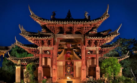 木門寺無際禪師亭為四川省省級文物保護(hù)單位。創(chuàng)建于明洪熙元年(1425年),位于安岳縣城北25千米處的清涼山,因亭除門系木制外皆石砌成,故此得名。無際禪師亭為石砌仿木建筑的無梁方殿,坐北朝南,外觀如“介”字形。寺后有大雄殿,依山而建。