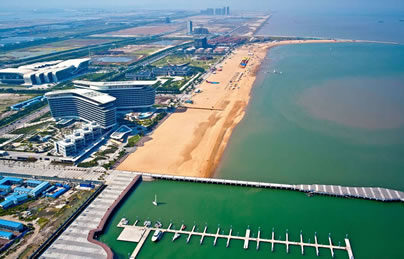 主要包括防波堤及人工海灘、游艇會(huì)所、五星級(jí)酒店、景區(qū)廣場(chǎng)、陸上海水浴場(chǎng)及低密度住宅等,是提升東疆港區(qū)商貿(mào)、旅游、休閑、宜居等整體環(huán)境,促進(jìn)周邊地域開發(fā)與商業(yè)發(fā)展的綜合旅游觀光區(qū)。將起到推動(dòng)整個(gè)綜合配套服務(wù)區(qū)的功能完善,帶動(dòng)整個(gè)東疆保稅港區(qū)快速發(fā)展的重要作用。