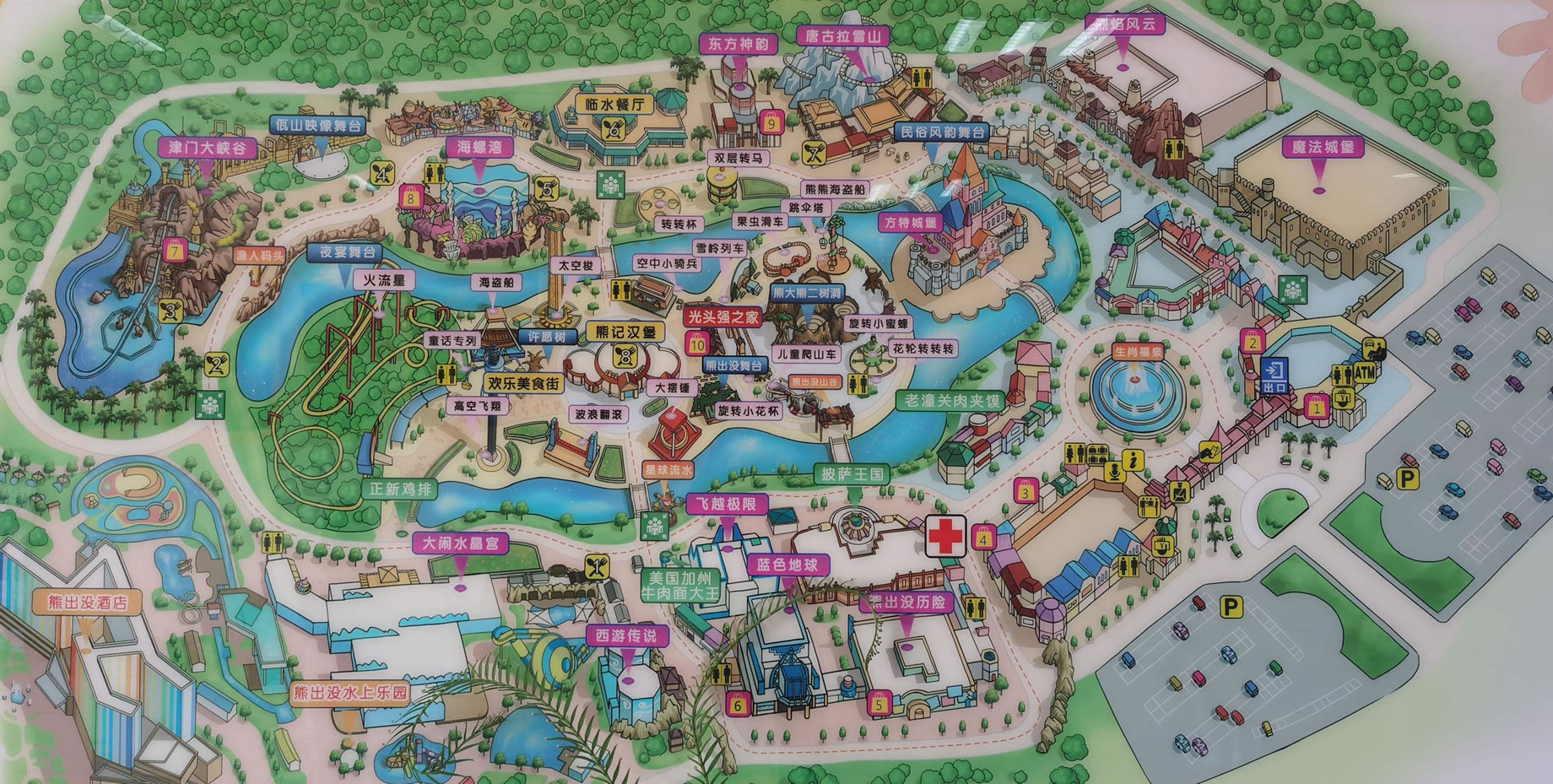 天津方特歡樂(lè)世界有高空飛翔體驗(yàn)項(xiàng)目“飛越極限”;動(dòng)感DARK RIDE 魔幻表演項(xiàng)目“魔法城堡”;動(dòng)感卡通射擊游戲項(xiàng)目“熊出沒(méi)歷險(xiǎn)”;懸掛式過(guò)山車(chē)“火流星”;大型雪山探險(xiǎn)模擬項(xiàng)目“唐古拉雪山”;色彩斑斕、如夢(mèng)似幻的4D劇場(chǎng)項(xiàng)目“海螺灣”;妙趣詼諧的卡通表演項(xiàng)目“熊出沒(méi)舞臺(tái)”等等。
