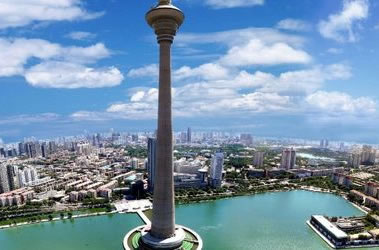天津廣播電視塔,景名“天塔旋云”,集旅游觀光、餐飲娛樂(lè)和廣播電視發(fā)射多功能于一體。天塔總高度415.2米,水榭亭閣式的塔座上,三層跌水倒掛珠簾,水中涌泉撒花揚(yáng)珠,配以剛?cè)嵯酀?jì)、碩長(zhǎng)挺拔的塔身,被游人稱為“空中樓閣”。天塔四面環(huán)水,碧波綠水,雄偉的天塔聳立期間,天塔總高度415.2米,水榭亭閣式的塔座上,三層跌水倒掛珠簾,水中涌泉撒花揚(yáng)珠,配以剛?cè)嵯酀?jì)、碩長(zhǎng)挺拔的塔身,被游人稱為“空中樓閣”的飛碟型塔樓,這一切相得益彰,使天塔宛若一位臨波出浴的仙子。