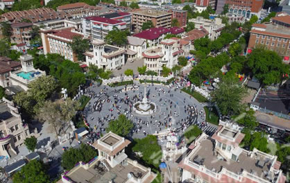 意式風情區(qū)以馬可?波羅廣場為中心,即民族路和自由道交會處,涵蓋哥特、羅馬、巴洛克等建筑特色,具有珍貴的歷史、文化、藝術價值。廣場周圍建筑錯落有致,雕飾精美,構成了風格典雅的建筑群。和平女神雕塑位于廣場中心,為意大利人設計和建造。