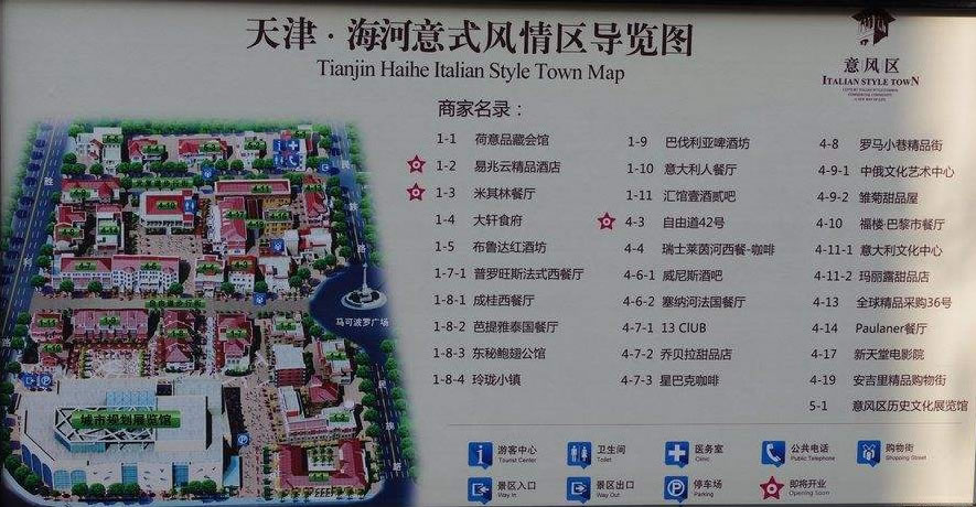天津意式風情區(qū)坐落于海河之濱,地處天津市河北區(qū),是由五經(jīng)路、博愛道、勝利路、建國道合圍而成的四方形地區(qū),占地28.45公頃,原為意大利租借地,幾乎包含了意大利各個時期不同風格的建筑,現(xiàn)存各類風貌建筑將近200棟,開發(fā)的有76棟,建筑面積達6萬平方米,是近代意大利在國外保留最為完整的歷史街區(qū)。