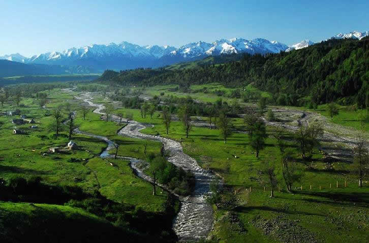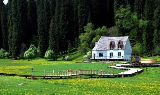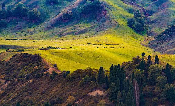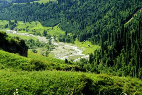 伊犁的草原風(fēng)景區(qū)都是處在東西走向的河谷地帶,唯獨伊犁鞏留縣東部山區(qū)的庫爾德寧是在一條南北走向的山間闊谷,長約14公里,最寬處約1公里,谷底平均海拔1500米,庫爾德寧便是哈薩克語“橫溝”的意思。特殊的南北走向,使得庫爾德寧冬暖夏涼,四季氣候宜人,所以庫爾德寧既是伊犁著名的風(fēng)景區(qū),又是旅游避暑的勝地,兼具江南山鄉(xiāng)的嫵媚清秀和草原景色的博大粗獷,吸引著越來越多的國內(nèi)外游客。她的絕色天姿和超凡脫俗的自然景觀令人嘆為觀止,使人無限向往。