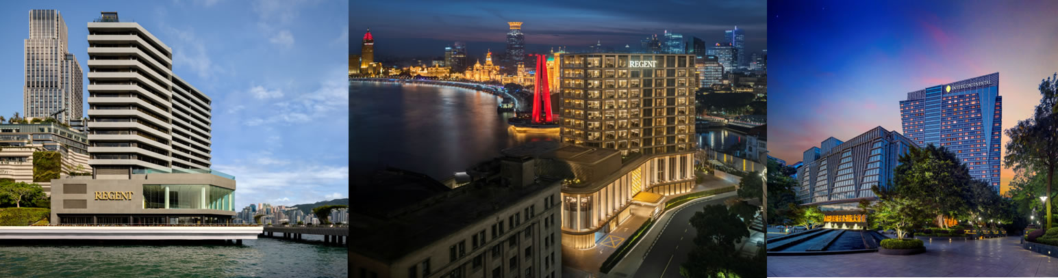 從左至右:香港麗晶酒店,上海海鷗麗晶酒店,成都世紀城天堂洲際大飯店