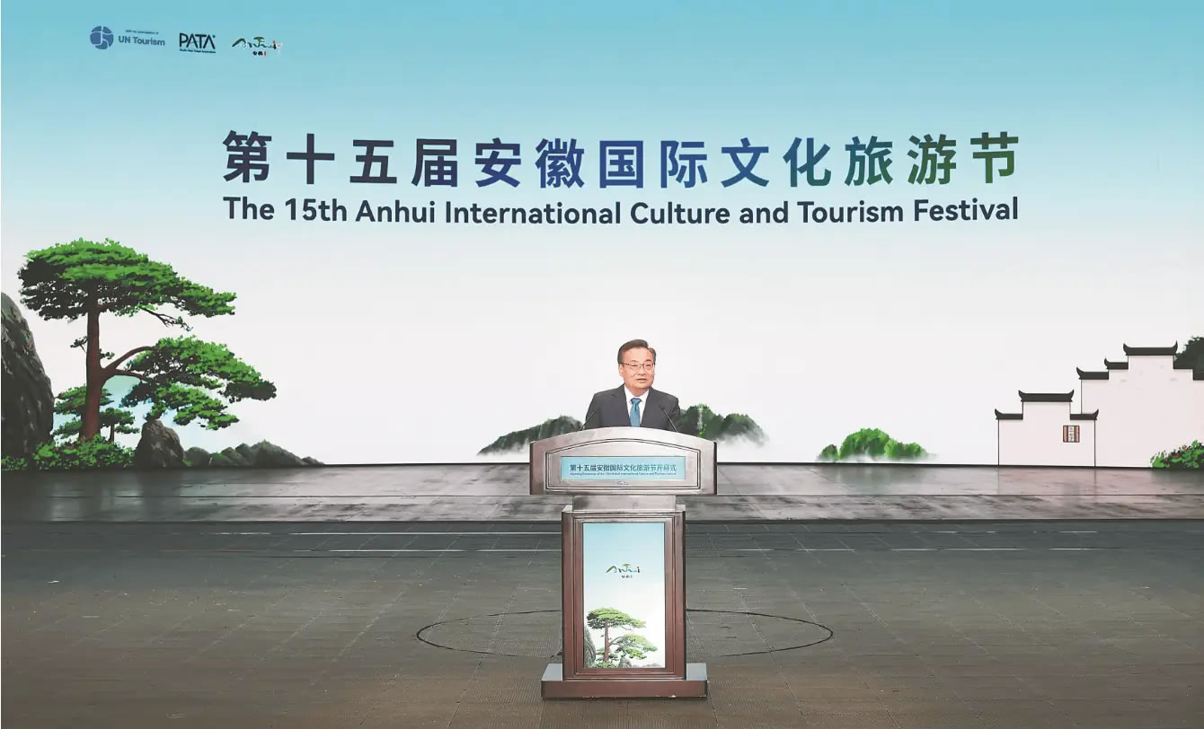 梁言順首先代表省委、省政府向各位嘉賓表示歡迎和感謝。他說,安徽山清水秀、歷史悠久,文化底蘊(yùn)深厚,每一寸土地、每一片山水,都展現(xiàn)出迷人的風(fēng)光、蘊(yùn)藏著動(dòng)人的故事,山水之韻同人文之勝相得益彰、交相輝映。近年來,我們?nèi)媛鋵?shí)“發(fā)展全域旅游,把文化旅游業(yè)打造成為支柱產(chǎn)業(yè)”的重要指示,堅(jiān)持以文塑旅、以旅彰文,持續(xù)做好“百業(yè)+文旅”“文旅+百業(yè)”大文章,“美好安徽 迎客天下”的金字招牌擦得更亮。當(dāng)前,安徽正處在夯實(shí)基礎(chǔ)、全面發(fā)力、創(chuàng)先爭優(yōu)、跨越趕超的關(guān)鍵時(shí)期。我們將深入學(xué)習(xí)貫徹黨的二十屆四中全會(huì)精神,持續(xù)完善政策保障體系,推動(dòng)文化和旅游業(yè)態(tài)融合、產(chǎn)品融合、市場融合,豐富高品質(zhì)文旅產(chǎn)品供給,打造更多文旅精品,讓海內(nèi)外游客在“詩和遠(yuǎn)方”的雙向奔赴中續(xù)寫新的故事。