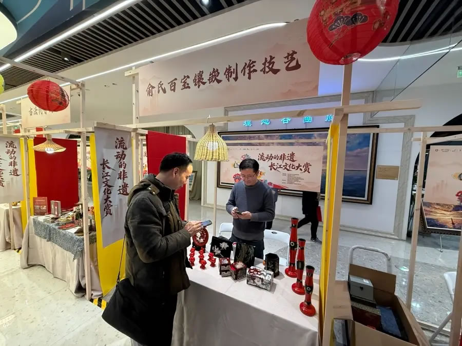 掛上紅燈籠,擺上精致的剪紙、竹編、漆器,一個(gè)熱鬧的非遺市集開張了。作為“上海新年第一游”寶山主會場活動(dòng)的組成部分,昨天,“流動(dòng)的非遺·長江文化大賞”率先在寶山濱江的上海·海上世界商圈拉開序幕。
