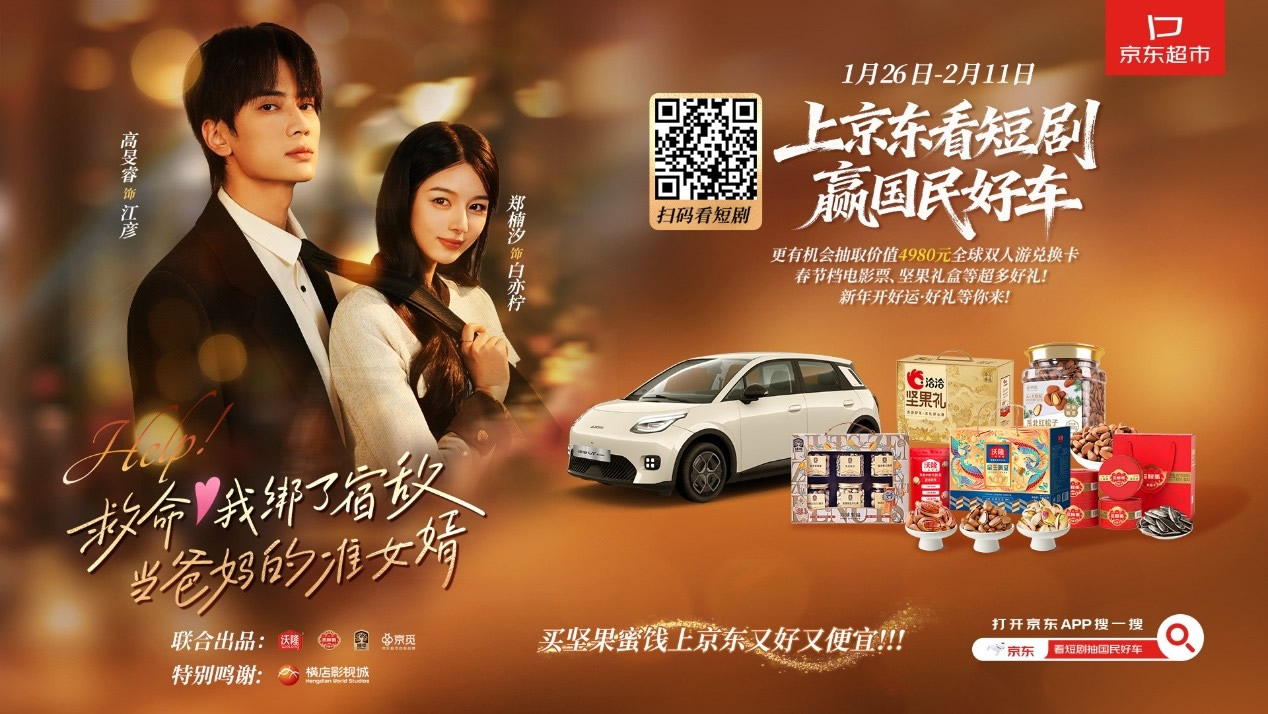 其中,京東旅行順應(yīng)當下短劇熱門趨勢,與京東超市堅果蜜餞品類攜手創(chuàng)新內(nèi)容營銷合作模式,聯(lián)合橫店影視城和沃隆、三胖蛋、臻味、京覓等堅果品牌,聚焦春節(jié)團圓、父母催婚等節(jié)點話題打造的定制輕喜微短劇,在呈現(xiàn)闔家歡樂的劇情中,自然融入京東堅果品類心智,并聯(lián)合站內(nèi)看短劇贏國民好車的互動活動,為品類品牌的年貨節(jié)營銷打開新的思路,實現(xiàn)曝光-心智-引流-轉(zhuǎn)化的營銷閉環(huán)。