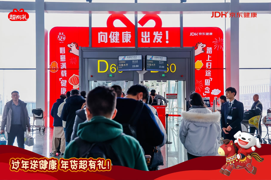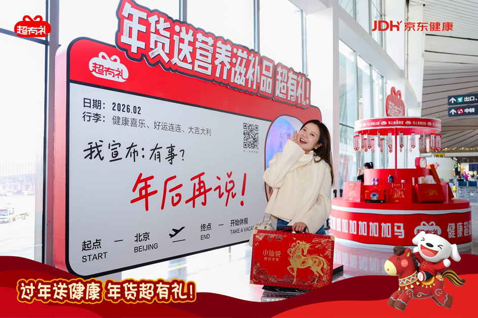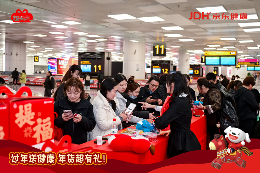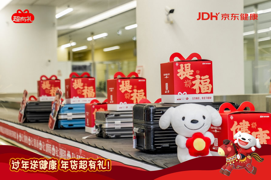 京東旅行攜手京東健康“超有禮”IP在此次年貨節(jié)中,通過全鏈路航空場景營銷實現(xiàn)了品牌與用戶的深度互動,圍繞“機場快閃—主題登機口—主題航班—行李傳送帶驚喜事件”構(gòu)建貫穿出行始終的品牌體驗閉環(huán),以創(chuàng)新的事件組合與場景融入,將健康關(guān)懷自然嵌入用戶春運旅程。這一策略高度適配春節(jié)出行場景,不僅精準觸達返鄉(xiāng)、探親、商旅等多類用戶群體,更通過具象化的健康禮品派發(fā)、溫情驚喜體驗等,持續(xù)強化“春節(jié)送健康禮”的消費心智,成功將健康禮贈塑造為新年問候的情感載體與品質(zhì)之選。