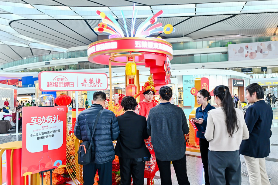 京東旅行攜手五糧液在此次年貨節(jié)中圍繞“機場快閃—主題航班—行李傳送帶驚喜事件”構(gòu)建全鏈路航空場景營銷體系,通過場景沉浸與體驗互動相結(jié)合的方式,創(chuàng)新打造“空中禮遇”高端消費場景。這一營銷策略精準契合春節(jié)出行期間高品質(zhì)用戶的禮贈需求,在航空場景這類高凈值人群聚集場景中實現(xiàn)精準觸達。通過文化展示、互動與禮贈驚喜的多維滲透,五糧液X京東超級品牌日不僅強化了其作為春節(jié)高端禮贈首選品牌的認知,更成功將“飛行途中·禮載心意”提升為春節(jié)消費的新風尚,進一步鞏固了在高端年貨市場中的心智占位與品牌勢能。