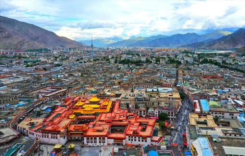 大昭寺,又名“祖拉康”、“覺康”(藏語意為佛殿),位于拉薩老城區(qū)中心,是一座藏傳佛教寺院,是藏王松贊干布建造,拉薩之所以有“圣地”之譽(yù),與這座佛像有關(guān)。寺廟最初稱“惹薩”,后來惹薩又成為這座城市的名稱,并演化成當(dāng)下的“拉薩”。大昭寺建成后,經(jīng)過元、明、清歷朝屢加修改擴(kuò)建,才形成了現(xiàn)今的規(guī)模。