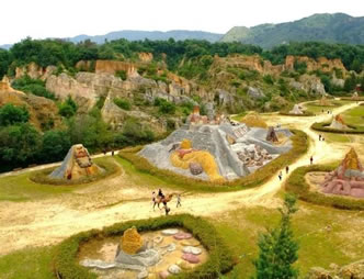 這里,有一片形成于3億4千萬年以前,具有較高旅游價(jià)值和地理研究?jī)r(jià)值,屬世界罕見的自然奇觀。其獨(dú)特的地理構(gòu)造,經(jīng)過數(shù)千年風(fēng)雨沖刷形成一個(gè)五彩斑斕、千姿百態(tài)的夢(mèng)幻世界——彩色沙林。