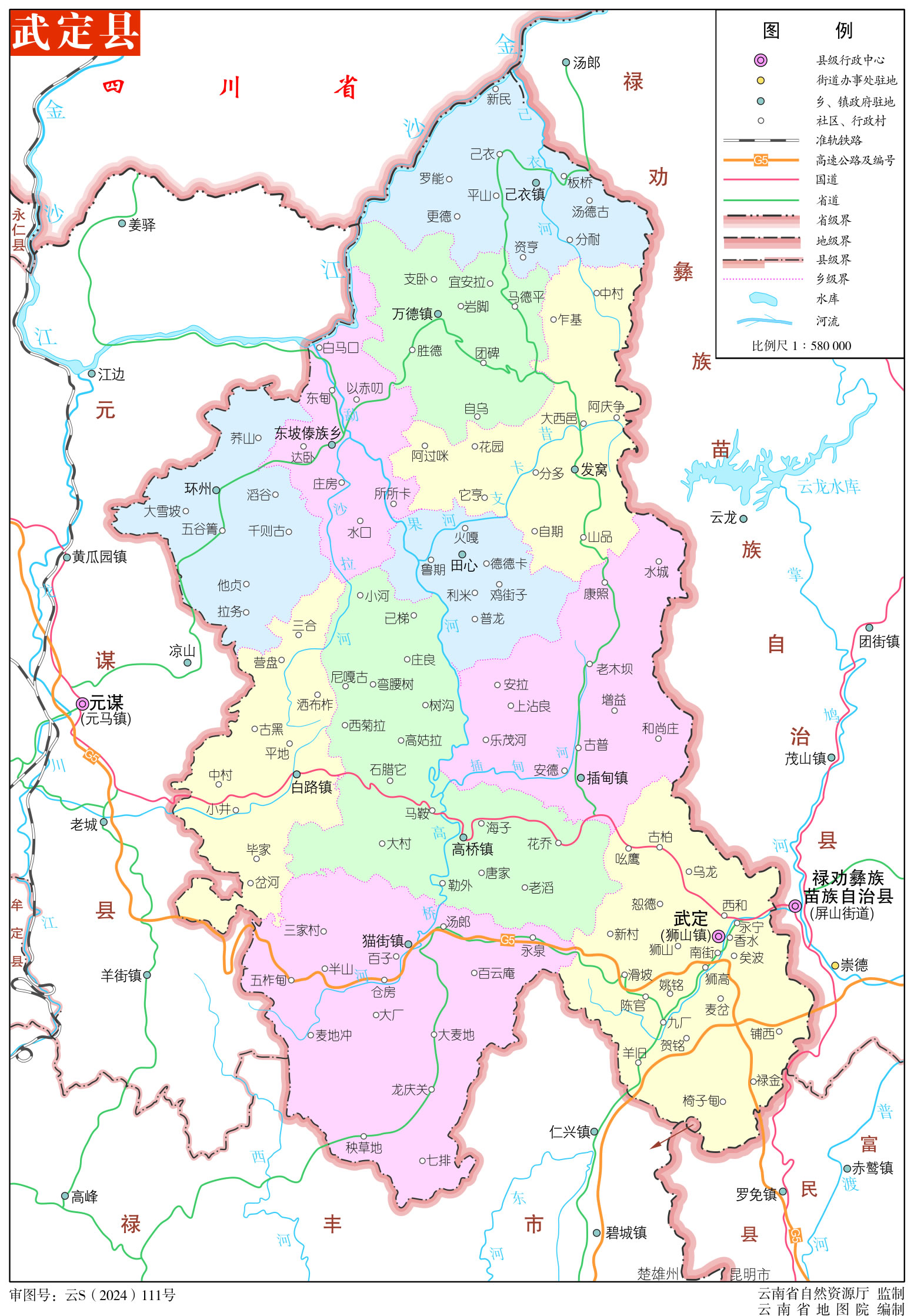 武定縣轄7個(gè)鎮(zhèn)、4個(gè)鄉(xiāng):