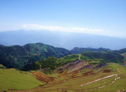 會澤大海草山位于云南省曲靖市會澤縣大海鄉(xiāng)東南部,屬烏蒙山系主峰段,海拔在3570--4017米之間,其最高峰牯牛寨(即絳云弄山)海拔4017.3米,是烏蒙山系的最高峰,唐朝時南詔國王封為東岳。