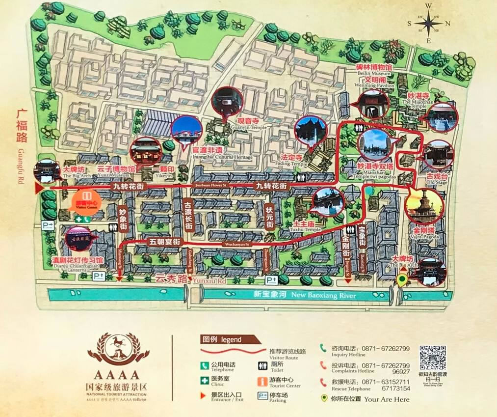 2001年4月,官渡古鎮(zhèn)文化古跡搶救工程動(dòng)工,經(jīng)過(guò)兩年多的艱苦努力,各級(jí)政府投巨資,將1350噸的金剛寶座塔整體抬升2.4米,并重建了妙湛寺及西塔,修復(fù)了孔廟,武廟,賜書(shū)堂,法定寺,土主廟,觀(guān)音寺,上、下閣樓等古建筑。
