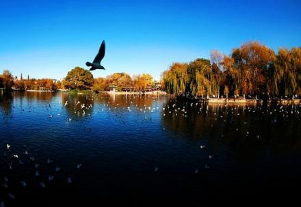 翠湖位于昆明市五華山西麓,占地面積352畝。湖東北有“九泉所出,匯而成池”,故又名“九龍池”。堤畔遍植垂柳,柳枝拂面,湖內(nèi)多種荷花,藕花飄香,舊有“十畝荷花魚世界,半城楊柳撫樓臺”之聯(lián),被譽為“城中碧玉”。有亭、臺、回廊、曲橋等建筑,其建筑精致玲瓏,亭閣均有匾對,歌詠園中的景觀。