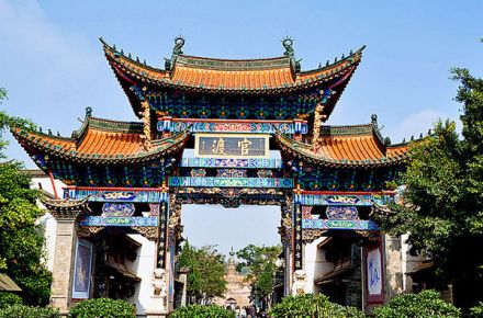 歷史悠久的官渡鎮(zhèn)位于昆明東南郊,是昆明地區(qū)著名的歷史文化古鎮(zhèn)之一。官渡古鎮(zhèn)大門(大牌坊)位于昆明東南郊 8 千米處,地處滇池北岸、寶象河下游,占地 17 平方千米。 官渡古鎮(zhèn)文化古跡眾多, 人文景觀豐富, 在不到 1.5 平方千米的面積內(nèi)就有唐、 宋、 元、明、清時期的五山、六寺、七閣、八廟等多處景觀。