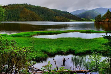 普達(dá)措國(guó)家公園內(nèi)的植被以長(zhǎng)苞冷杉為主,其次,根據(jù)不同的海拔及陰陽(yáng)坡著杜鵑、箭竹、苔蘚、忍冬、云杉、高山松、高山櫟、短刺櫟、紅杉、紅樺、山楊、白樺等,從草甸和水生植物上看,主要為蒿草草甸,水生植被主要為香滿群落、光葉眼子菜群落、狐尾群落、梅花藻群落等。