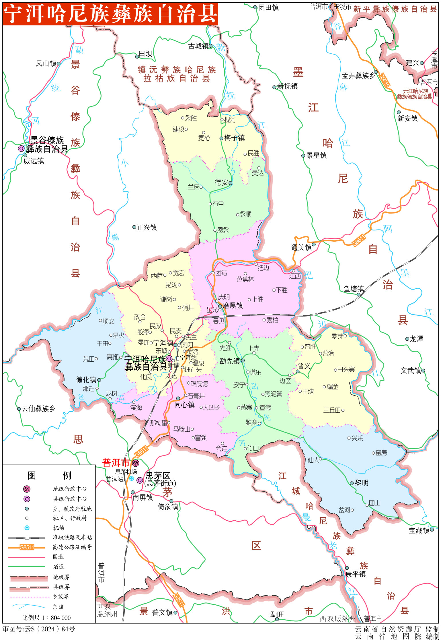 寧洱哈尼族彝族自治縣轄6個(gè)鎮(zhèn)、3個(gè)鄉(xiāng):
