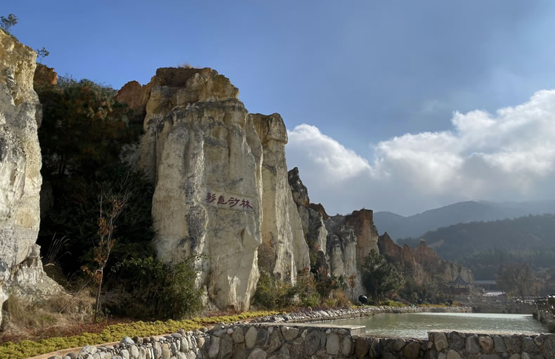 彩色沙林是一個以天然形成的沙柱、沙峰為特征的景區(qū),位于陸良縣城東南面18公里處,整個景區(qū)面積6平方公里。它是由地震沖擊、地殼運動等因素逐步形成的地貌奇觀,彩沙凝結(jié)成沙柱。 沙林里主要景點有群雄爭艷、駝峰、火焰山、書生洞、古長城、萬年右木、古城堡、金沙林、雪峰、三十六計、七擒孟獲等。1988年向社會開放,2001年被國家旅游局評定為AAAA級旅游區(qū)。