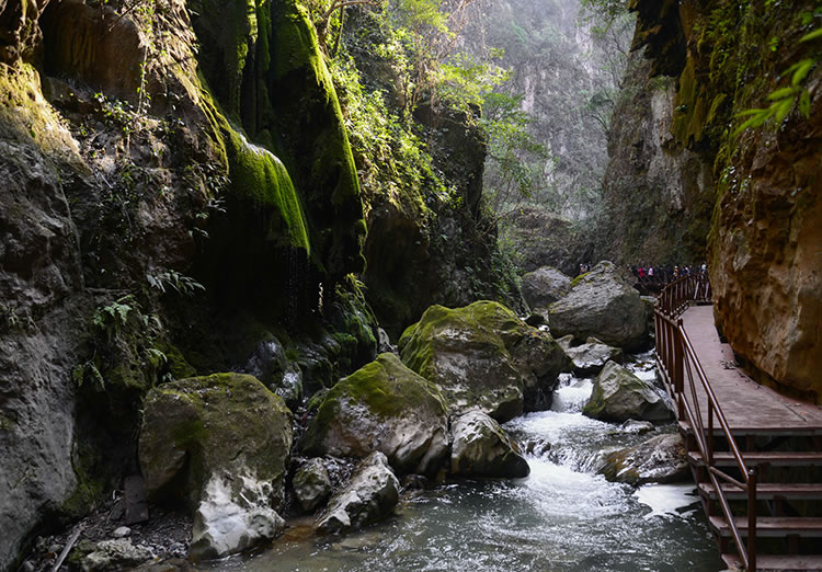 大地縫旅游景區(qū)位于縣城東南60千米的雨碌鄉(xiāng)。入口處稱“生命之門”。洞內(nèi)頂部呈弧形,有上億年巖漿形成的道道褶皺,當(dāng)?shù)厝朔Q“天花板”,長(zhǎng)約20余米。過了天花板,但見青天一線,在綿延曲折的10余千米地縫中,兩山最窄處僅1.6米,最寬處不過20余米。