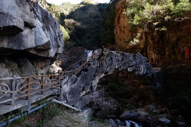 古代的文人墨客雖然游了石門關(guān),但卻不能進入石門關(guān)縱深之處游覽,李元陽驚呼石門內(nèi)“忽驚飆從空中飛墜,聲如訇雷,凜乎不可留,從者扶挽而出。”徐霞客考察到石門關(guān)口嘆道:“但門以內(nèi)則石崩水涌,路絕不通,乃復(fù)上就北岐躡磴”。二位先賢不能進入石門縱深游覽,不能說不是一種遺憾。隨著歲月的流逝,歷史的滄桑巨變,現(xiàn)代人能隨心所欲進入石門縱深探幽走險,實在是一種福份。