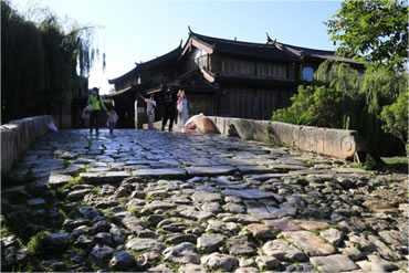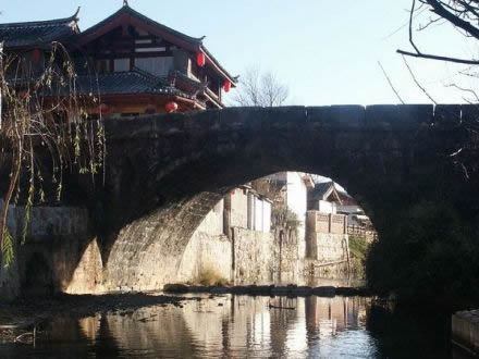 長(zhǎng)25米、寬4.5米、高4米,全部由石塊壘砌,列為麗江古石橋之最,可見(jiàn)束河在麗江歷史上的經(jīng)濟(jì)文化格局中所占的重要地位。青龍橋的橋面經(jīng)過(guò)數(shù)百年風(fēng)雨的洗刷使它變得斑駁蒼老,卻不失它的英雄氣勢(shì)和莊嚴(yán)厚重感,站在這里,你也許會(huì)聽(tīng)見(jiàn)馬蹄的聲音在回響。