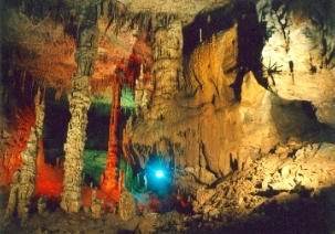 天臺山溶洞離縣城32公里,位于麟風鄉(xiāng)畢壩公路邊的老鷹巖上,具有宏、美、寬、多的特點。洞有四層,每層之間高差20~50米,互相貫通,各有廳堂,其中可開發(fā)利用3層。已探測的第二層洞面積64095平方米,長2138.2米。洞終標高1188.94米,其中:主洞長1264米,寬35米,高約25米;支洞深874.1米,寬25米,高18~25米。有10余個大廳,大者寬約100米,小者寬20~30米。洞內次生碳酸鈣沉積物類型繁多,色彩絢麗,形成各異。單體、復合體共生,黃色、淡紅色、白色或無色透明石乳、石筍、石柱比比皆是,多以站立式、側掛式、懸垂分布式。