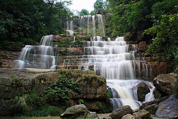 大關(guān)黃連河瀑布群距昭通市大關(guān)縣城5公里,有專線公路及中巴車直達景區(qū)。沿途山花爛漫、幽谷縱橫、清泉奔涌、鳥語花香。主要景點有仙女瀑、情郎瀑、少女瀑、月老瀑、鴛鴦瀑、洞房瀑、相思瀑、對歌瀑、姊妹瀑、銀鏈瀑、迎客瀑、壽星瀑、珠簾瀑及神秘莫測、千姿百態(tài)的白象洞,令人心曠神怡的水簾長廊和使人銷魂愜意的大滑板等20多處。加上形似飛鴿的世界珍稀植物珙桐花,堪稱天下奇景。