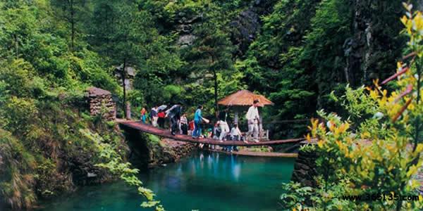 天斗地漏,位于桐廬縣東南,與浦江、諸暨、富陽三縣(市)交界處,距杭州80公里,距桐廬縣城30公里。天龍九瀑景點(diǎn)位于雪水云綠產(chǎn)地雪水嶺東,據(jù)古典記載:“其間崇山峻嶺,人跡罕至,蓋百里,而泄水龍王托居其間“,后人筑廟祭祀,以求雨水。在此崇山峻嶺之中,林木蒼翠,溪流隨山勢(shì)落差,自峭壁懸崖之上飛瀉跌落,形成九潭九瀑,落差俱數(shù)十米,為桐廬鏡內(nèi)第一瀑布群。九瀑或曲折幽深穿石破崖,或銀河瀉落、雷霆龍吟,身居其間,山水之奇絕給人以無限贊嘆。懸崖飛瀑之上則溪流蜿蜒,幽谷鳴鳥,谷中植被茂盛,是天然的森林氧吧。
