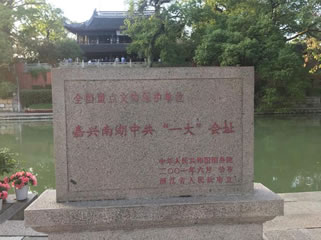 民國10年(1921)8月初,中國共產(chǎn)黨第一次全國代表大會在南湖的一艘游船上閉幕,宣告中國共產(chǎn)黨成立。從此,南湖成為光榮的革命紀念地,載入了革命史冊。1959年10月1日,南湖革命紀念館成立,以湖中煙雨樓作為館址,按照當年中共“一大”代表乘坐的游船樣式仿制的革命紀念船,陳列在煙雨樓下萬福橋旁,從那以后,每年有數(shù)十萬游客前來瞻仰,接受革命傳統(tǒng)教育。1985年,鄧小平為南湖革命紀念館題寫?zhàn)^名。建國以來至1990年,許多黨和國家領導人如董必武、郭沫若等都曾來南湖視察、游覽。