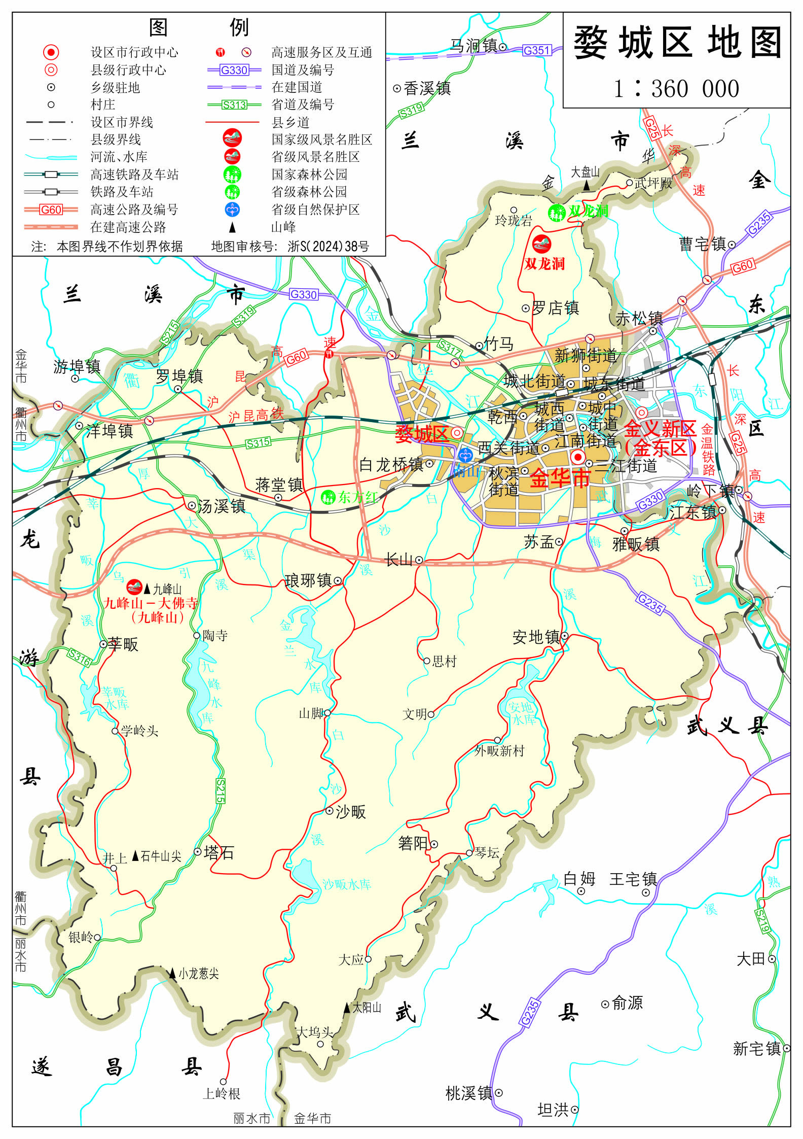婺城區(qū)轄9個街道、9個鎮(zhèn)、9個鄉(xiāng):