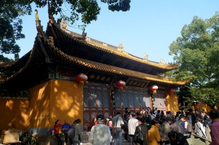 普濟禪寺又稱前寺,始建于宋元豐年間(1078年—1085年),是普陀山第一大寺,也是全國重點寺院,歷代全山方丈均住錫于此。寺院規(guī)模宏大,有“五步一樓,十步一閣”之稱,全寺殿堂六進,自南向北貫串在一條中軸線上。其中大圓通殿是普濟寺主殿,殿中供奉高8.8米的毗盧觀音為菩薩正身法像,兩邊端坐觀音“三十二應身”,以示觀音大士感應世間萬物眾生。