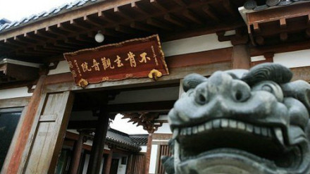 不肯去觀音院,位于紫竹林。不肯去觀音院是當年慧鍔法師供奉不肯去觀音的地方,是普陀山觀音道場的發(fā)源地,F(xiàn)殿內供仿唐式十一面觀音像,寺院西側筑“三十三觀音靈場”長廊,內塑日本33座供奉觀音的寺院主尊。