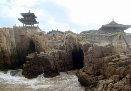 潮音洞口朝大海,呈張口狀。日夜為海浪所擊拍,潮水奔騰入洞口。若遇大風,浪花飛濺,浪沫直沖“天窗”之上。如是晴天,洞內七彩虹霓幻現(xiàn)。