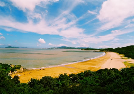 千步金沙長1370米,寬400余米,是舟山群島第二大沙灘,位于舟山普陀山。千步金沙又稱塔灣金沙,據傳在塔灣南側龍?zhí)犊釉ㄓ幸皇,港灣倒映塔影,故而得名。千步金沙屬細型沙質,細軟純凈。