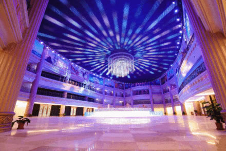 薈萃各式餐飲商品、頂部為一整塊環(huán)繞的天幕,場景逼真宏偉,令游客流連忘返、身心盡娛的時尚消費(fèi)目的地。
